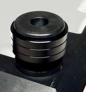 Installation of these custom Technics SL-1300 mk2 Turntable Isolation Feet require removal of the factory feet. Close-up of Technics custom foot installed in SL-1300 mk2.