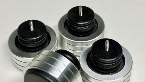 Installation of these custom Technics SL-1300 mk2 Turntable Isolation Feet require removal of the four factory feet. These Technics custom made replacement feet are made by Mnpctech in Minnesota.